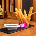 100 γρ. Τραγανό τόφου σε τεμπούρα σερβιρισμένο με γλυκιά σάλτσα τσίλι. |
