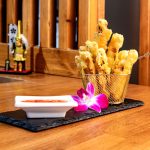 100 γρ. Τραγανό καρότο σε τεμπούρα σερβιρισμένο με γλυκιά σάλτσα τσίλι. | ||