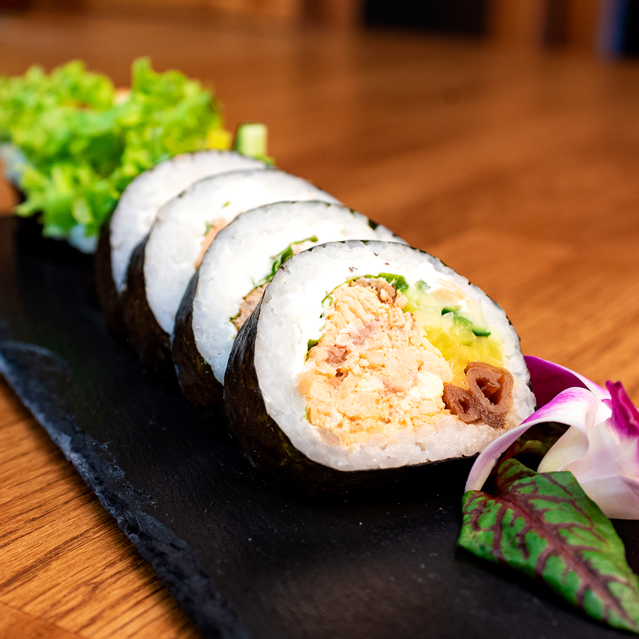 / Futomaki με ψητό σολομό, τυρί Philadelphia και λαχανικά